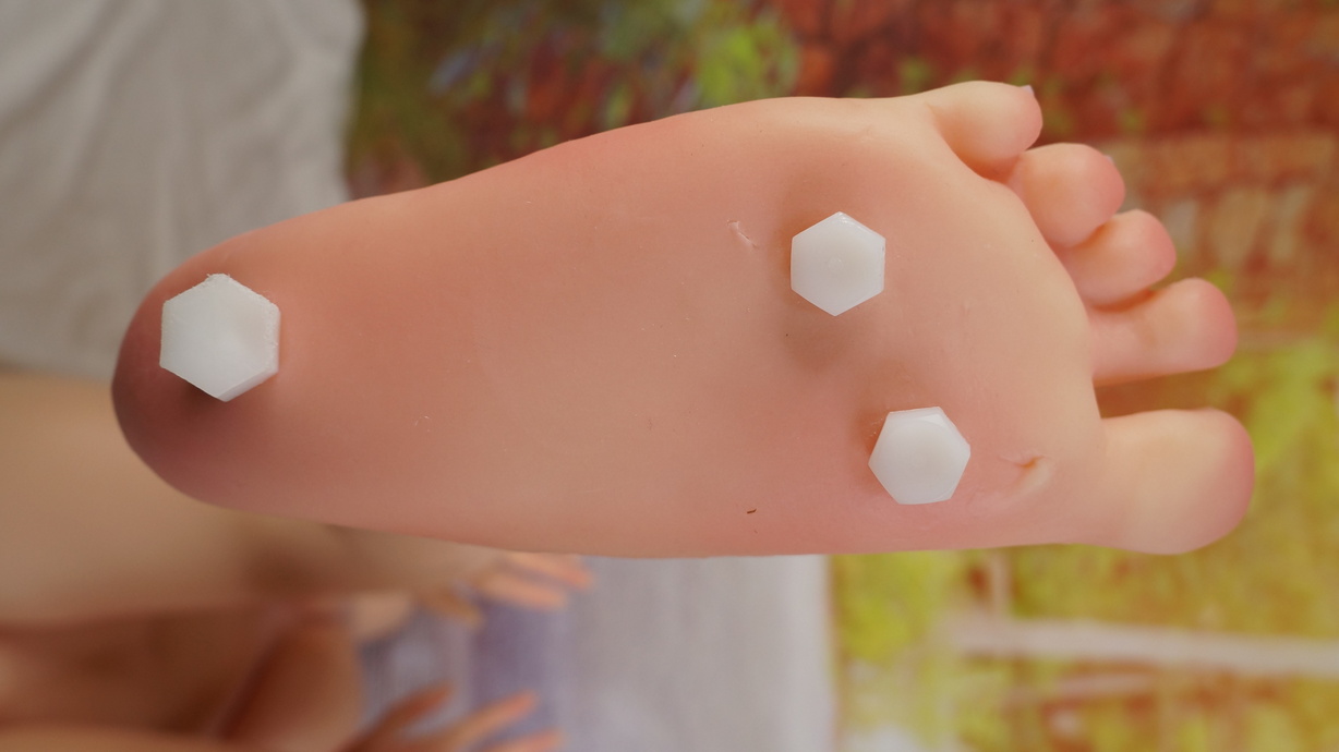 ・両足裏に浅い亀裂とほつれ-