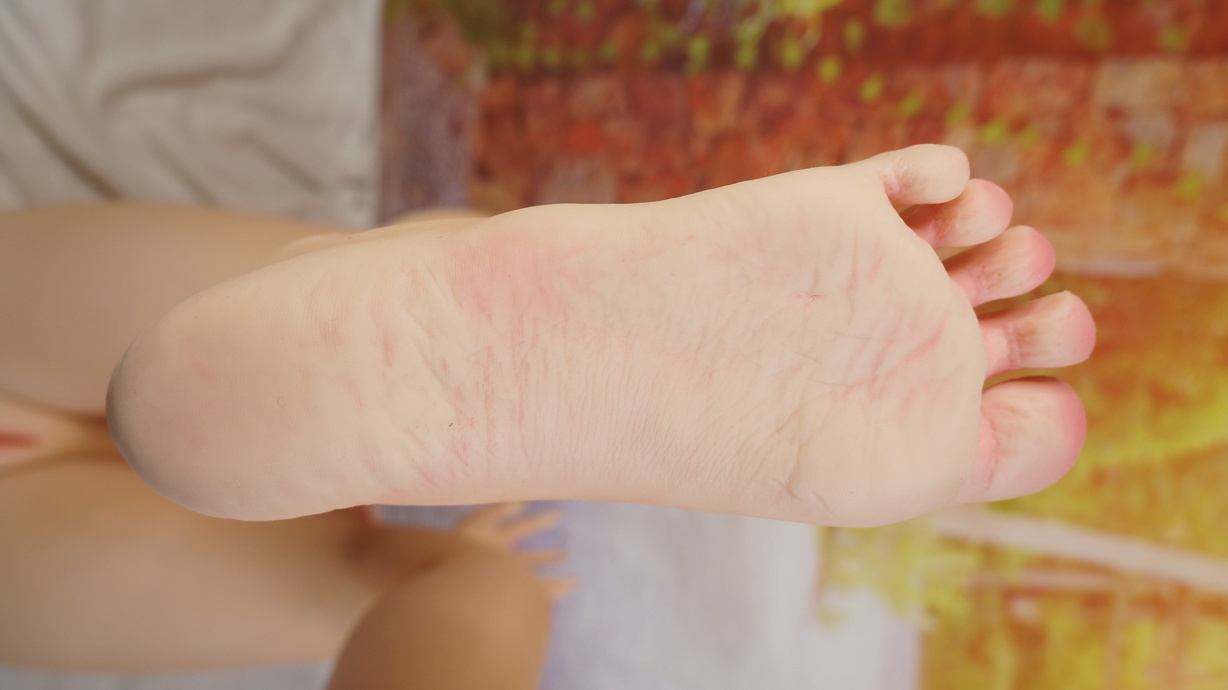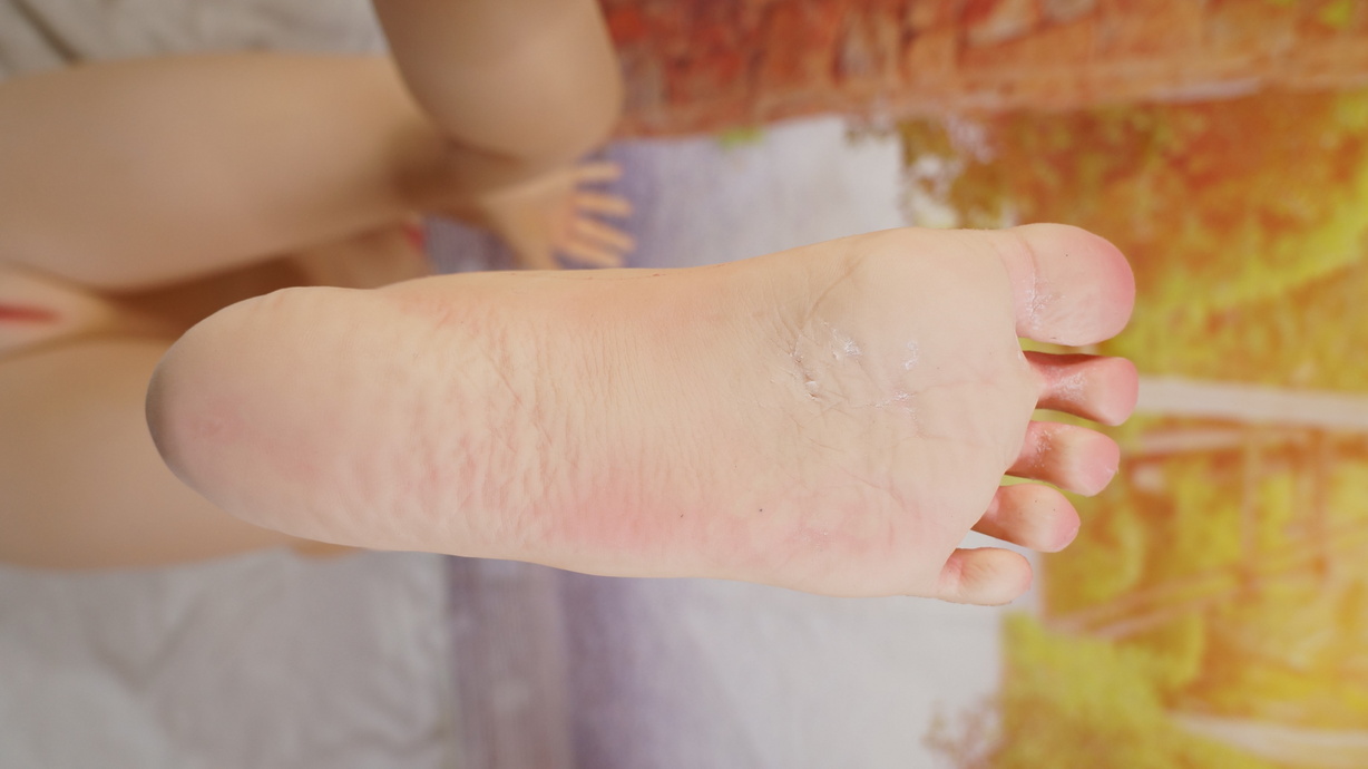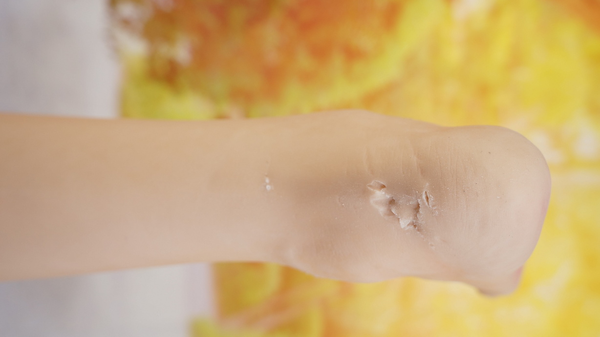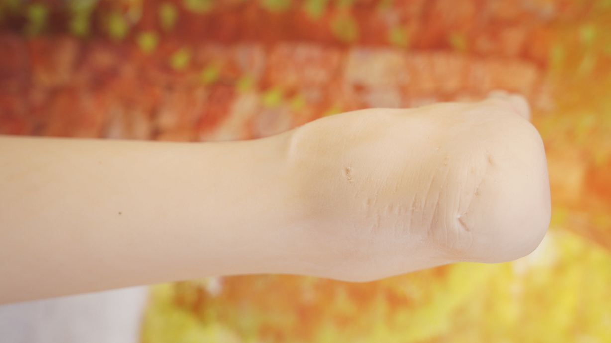 ・両足かかとに亀裂(補修済み)-