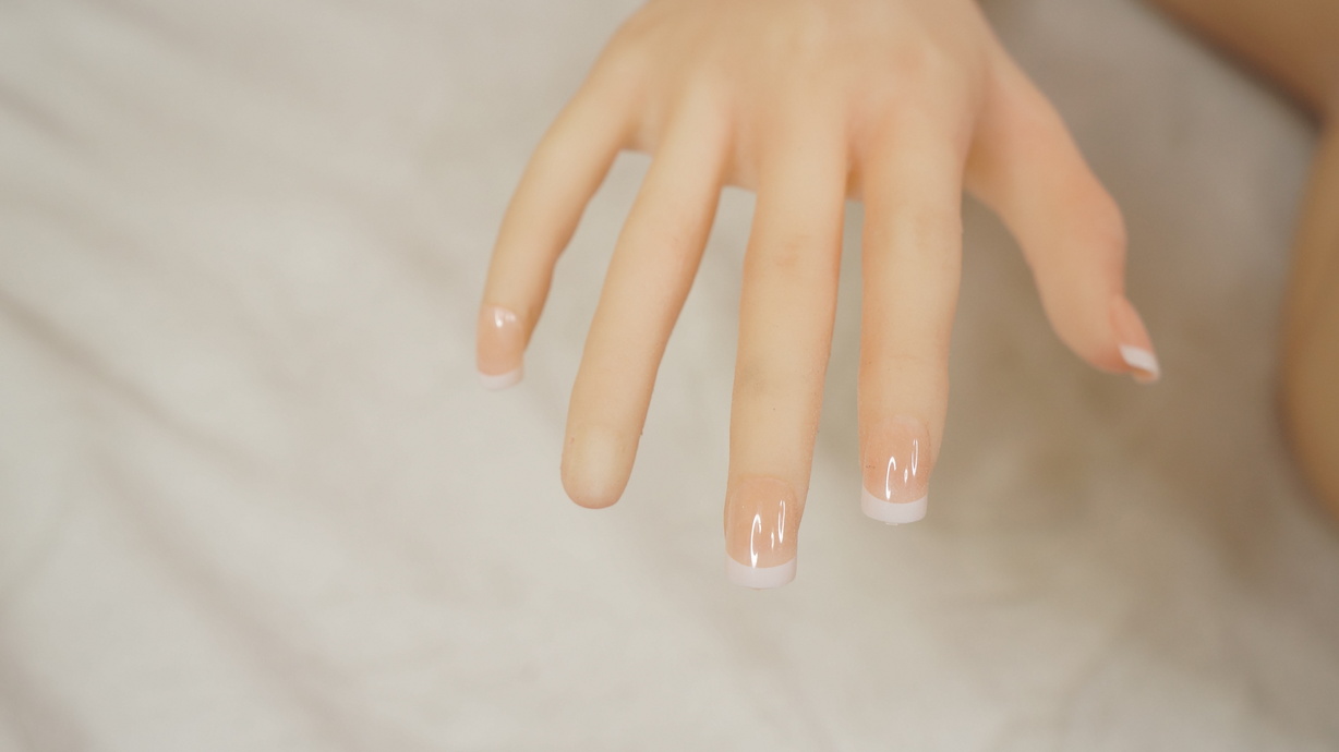 ・右手小指にネイル接着跡-