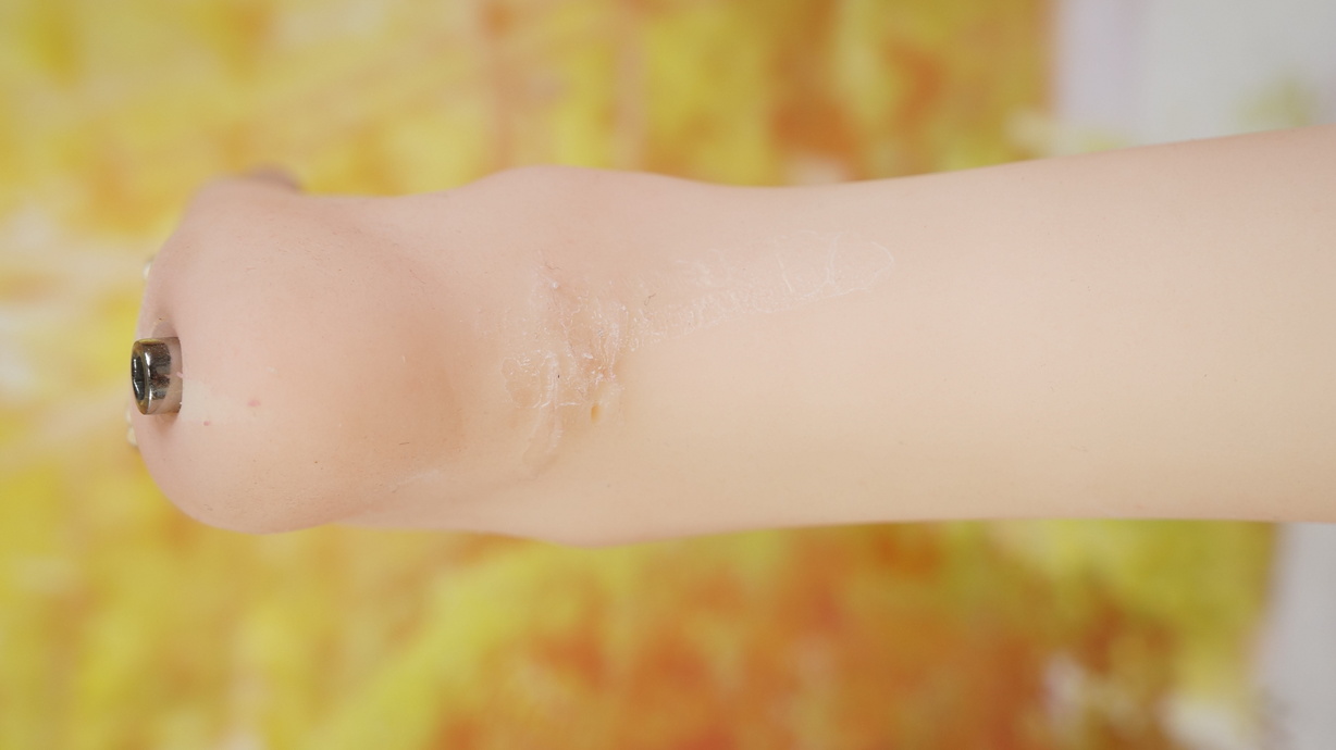 ・右肘に網目状の亀裂-