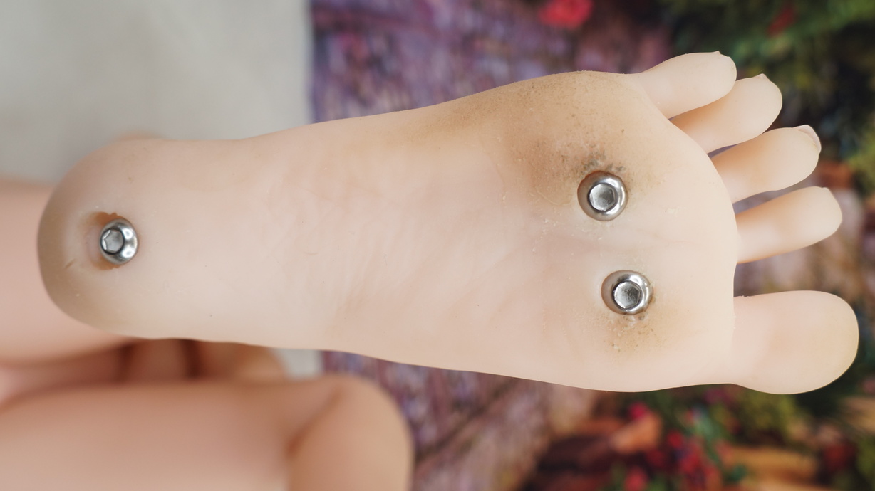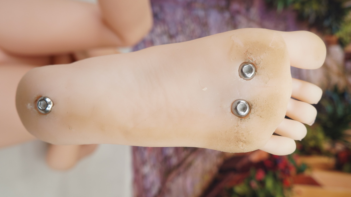 ・両足裏にほつれ、黒ずみとわずかな亀裂(修復済)-