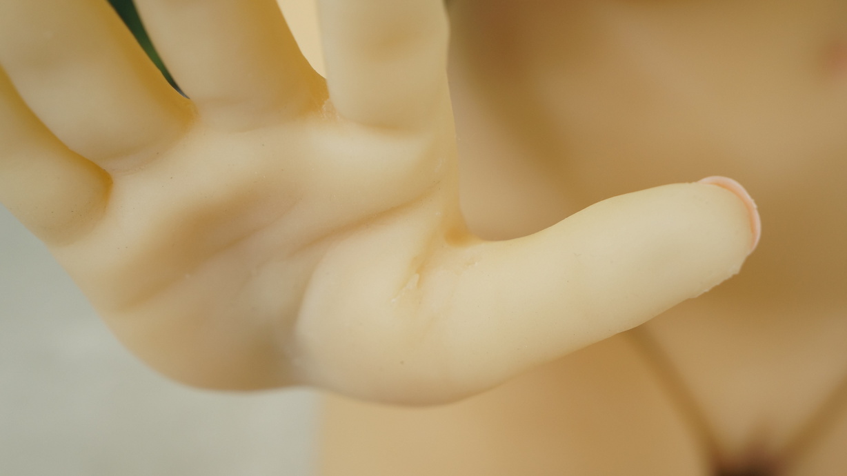 ・左手人差し指付け根に浅い亀裂(補修済み)-