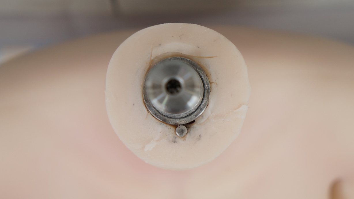 ・右乳下に亀裂(補修済)(内容物漏れなし)-