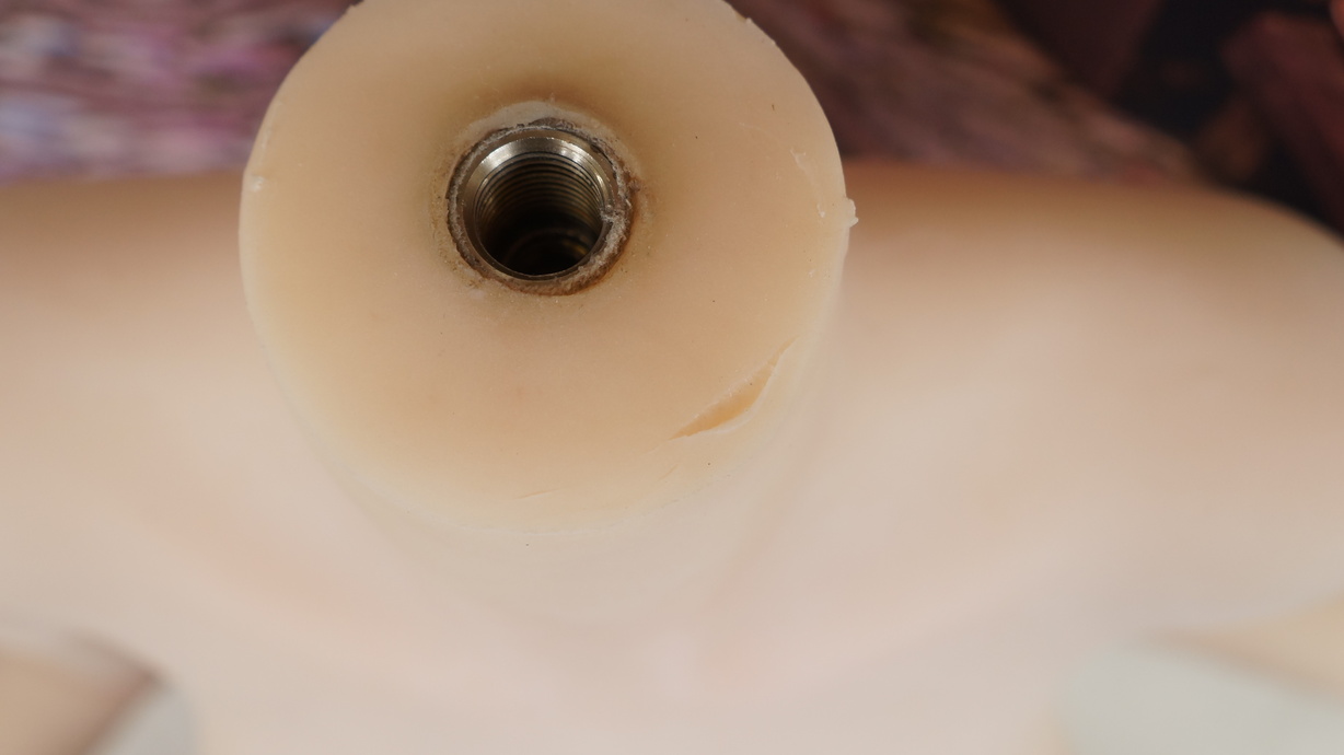 ・右胸にほつれと亀裂(補修済)-