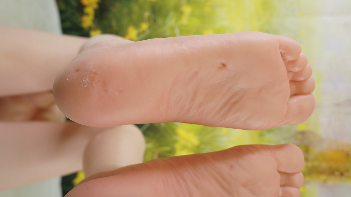 ・両足裏に凹みと浅い亀裂-