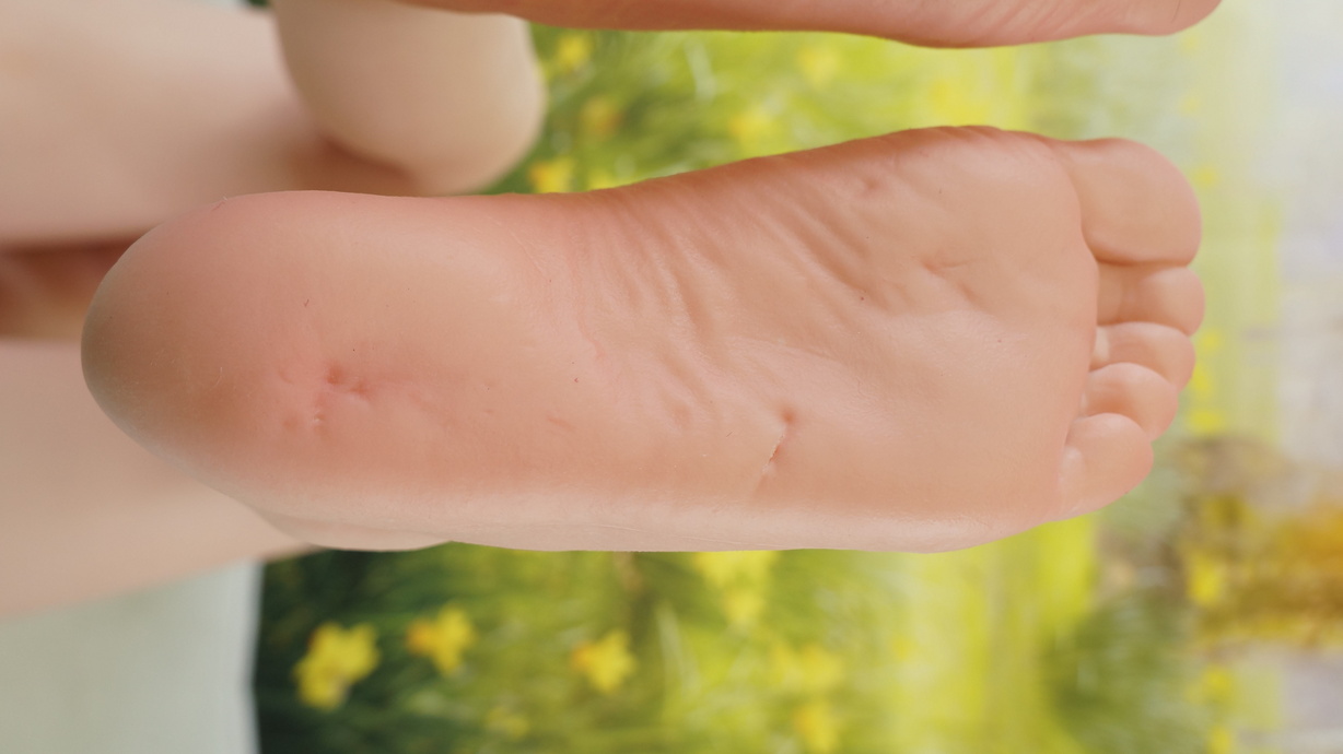 ・左足の甲にわずかな凹み-