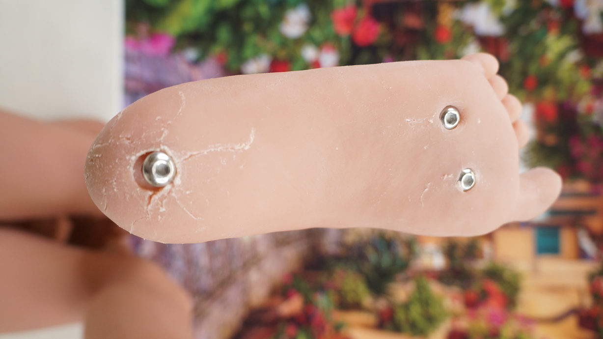 ・両足裏にほつれと浅い亀裂(補修済)-