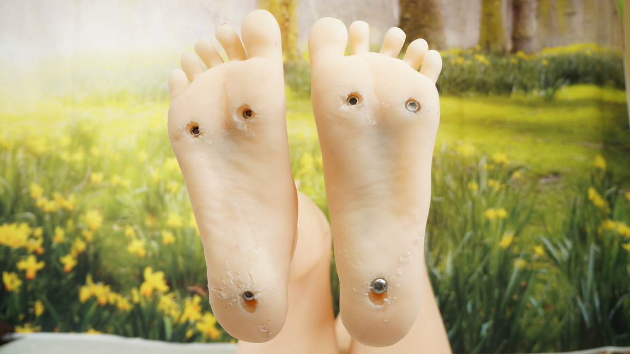 ・両足裏にほつれと亀裂(補修済み)-
