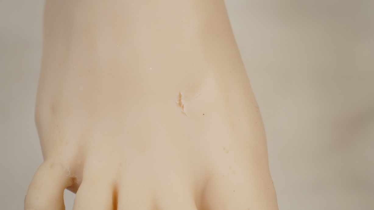 ・右足の甲にほつれ-