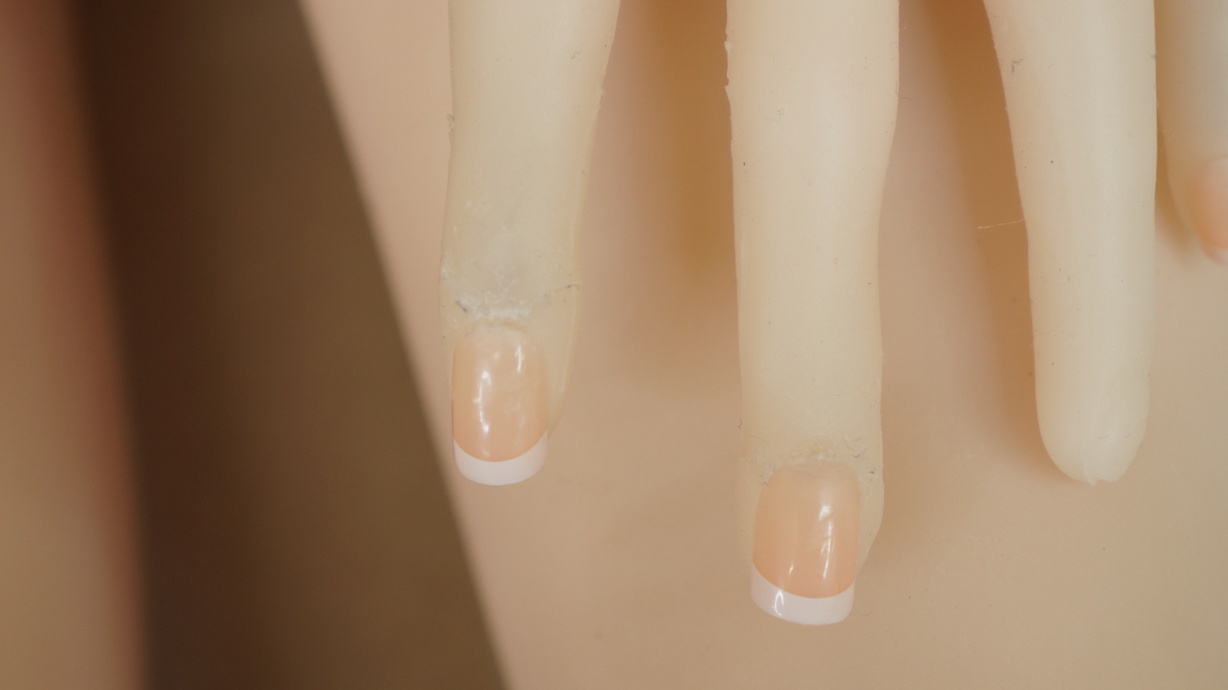 ・右手中指、薬指、小指のネイル剥がれ-