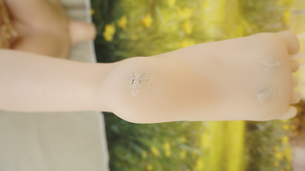 ・両足裏に亀裂(補修済み)-