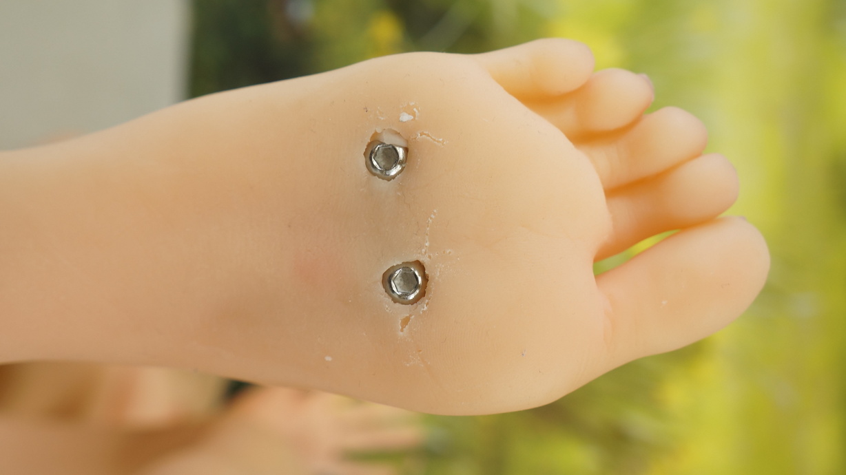 ・右足親指にわずかな亀裂(補修済み)-