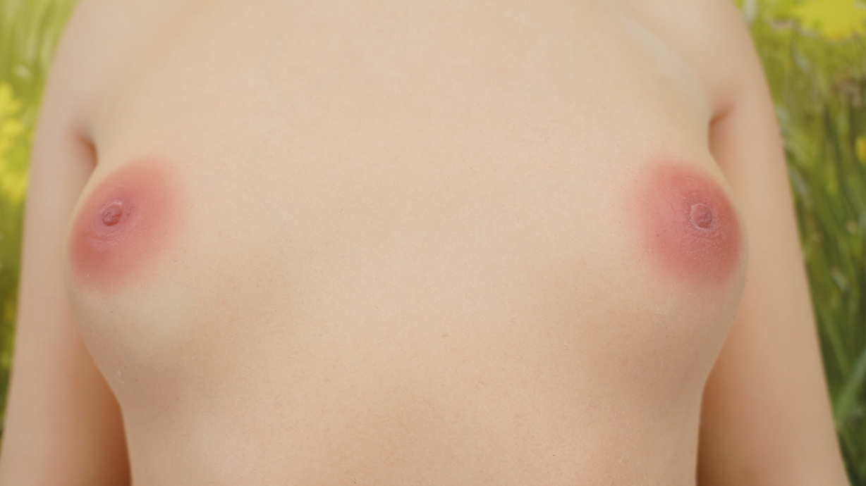 ・左胸上にわずかな凹み-