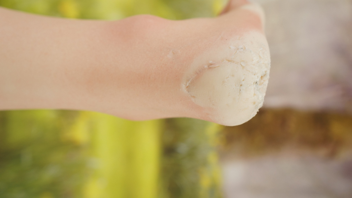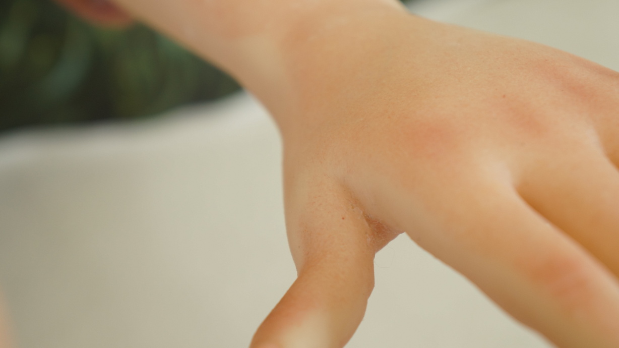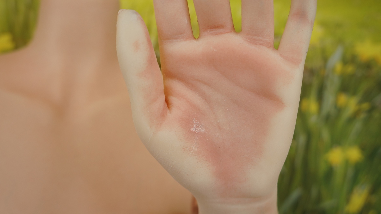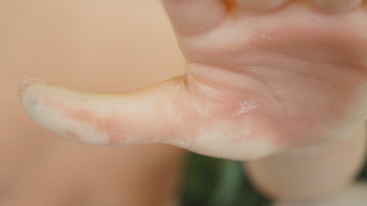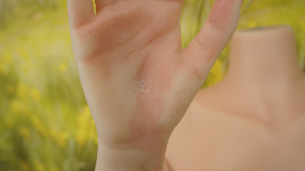 ・両手の平にわずかな亀裂(補修済み)-