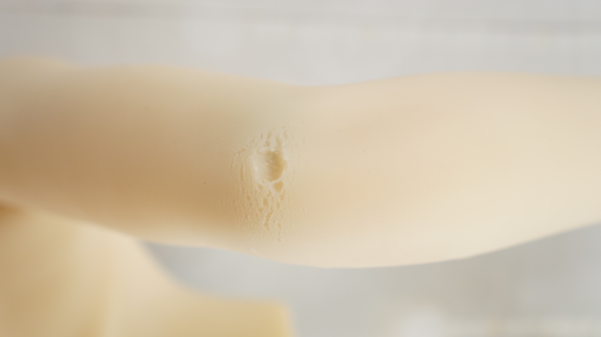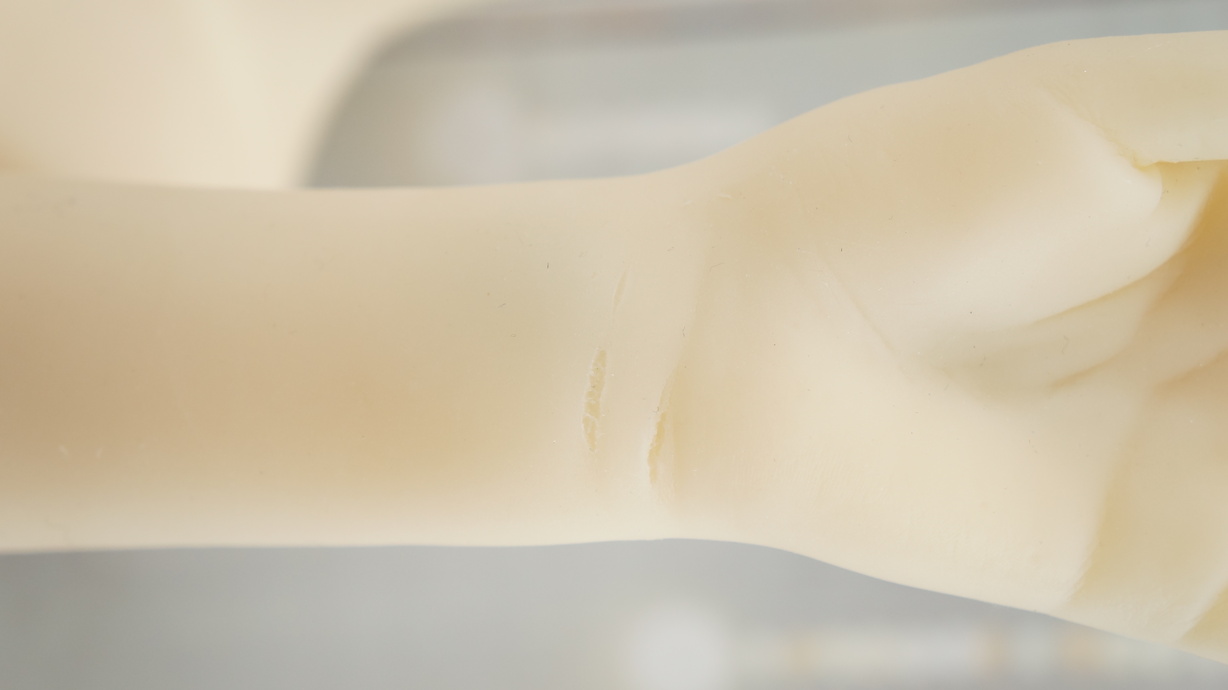 ・左前腕にわずかな亀裂(補修済)-
