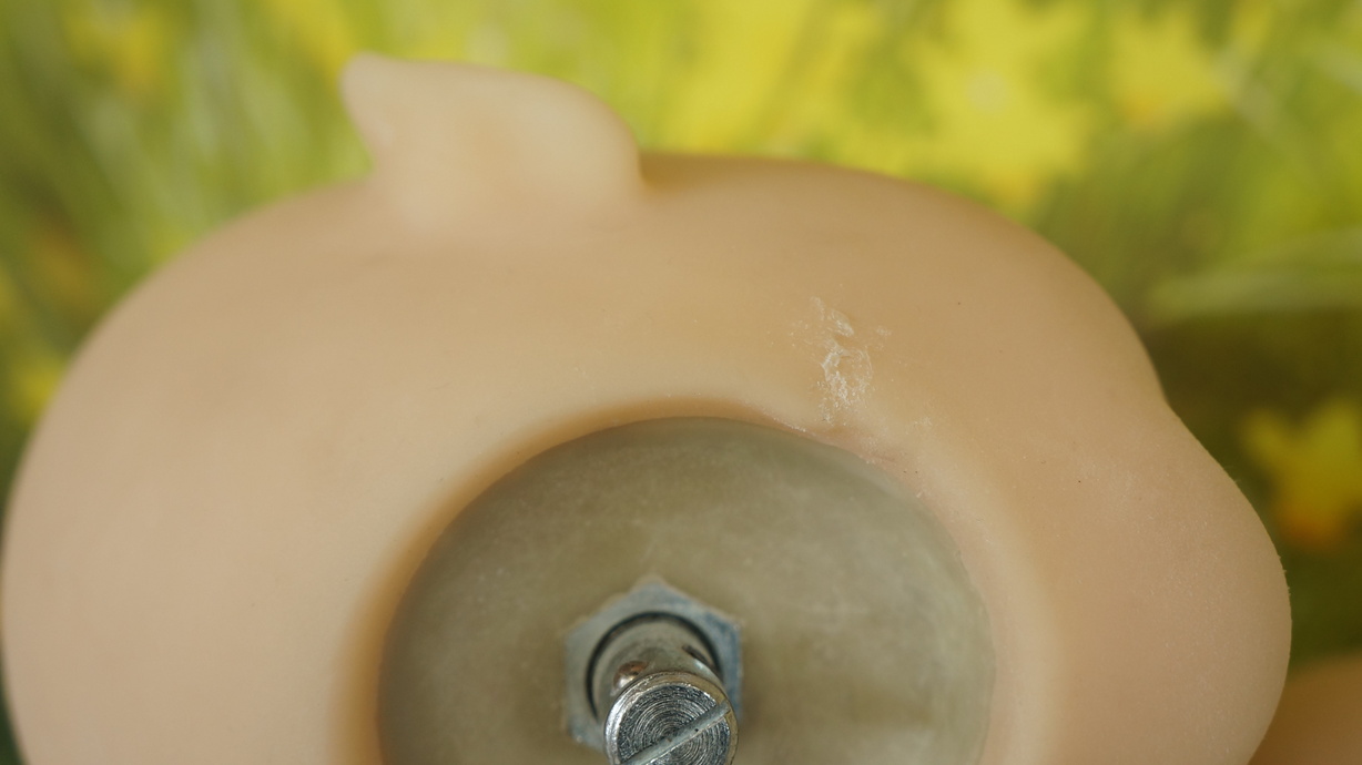 ・両お尻に複数の少しの亀裂(補修済み)と黒ずみ-