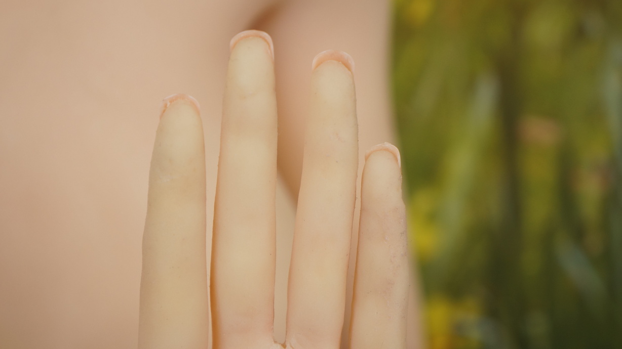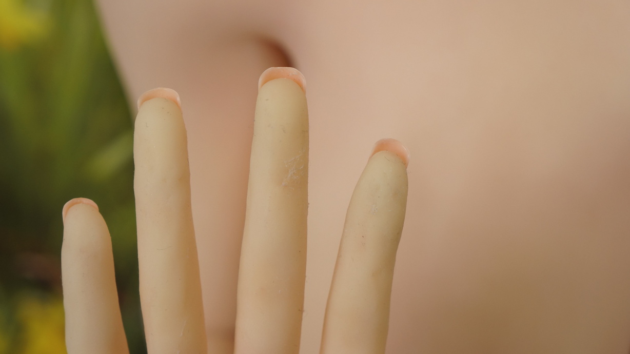 ・左手指から手の平 各所に少しの亀裂(補修済み)-