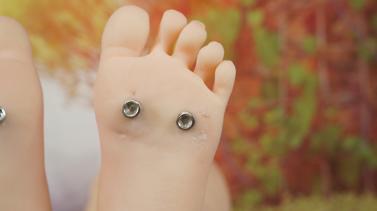 ・左足裏にわずかな亀裂(補修済み)とわずかな凹み-
