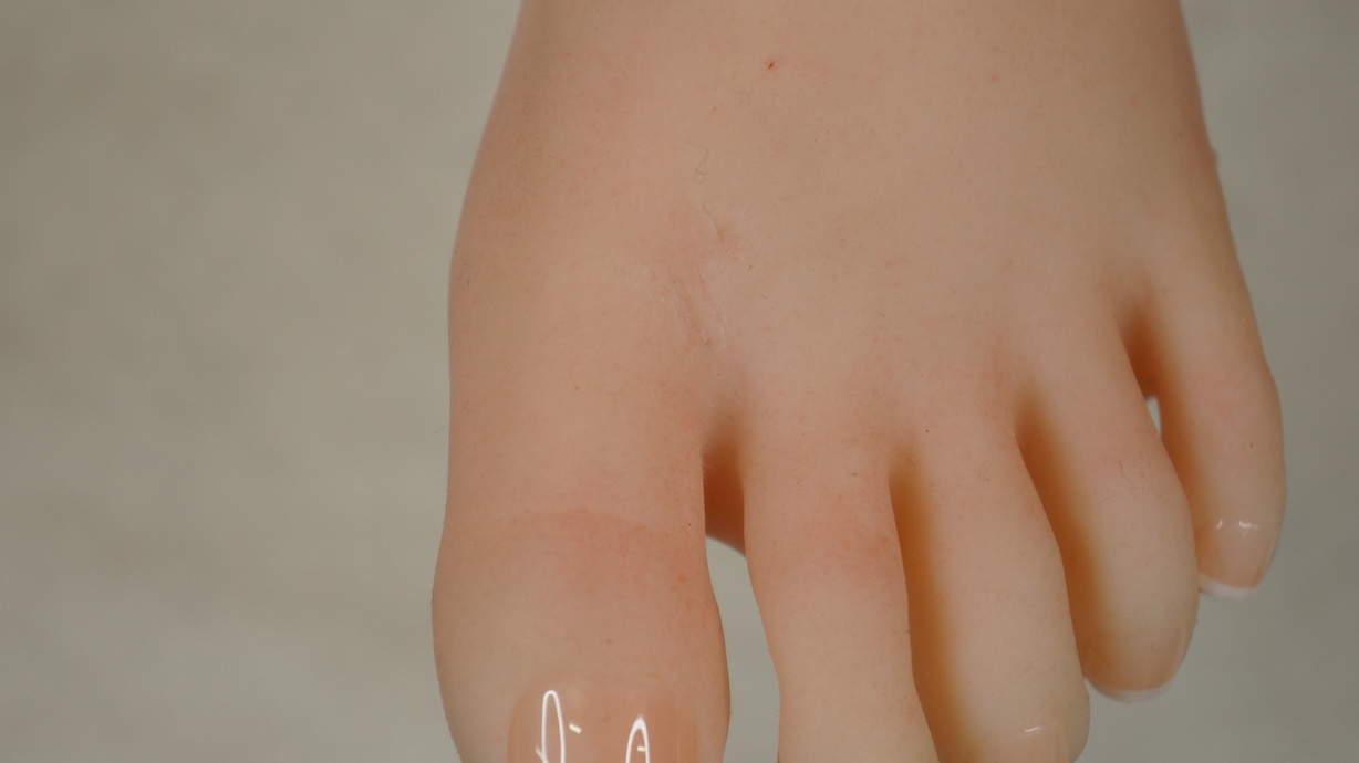 ・左足親指付け根にわずかな亀裂(補修済み)-