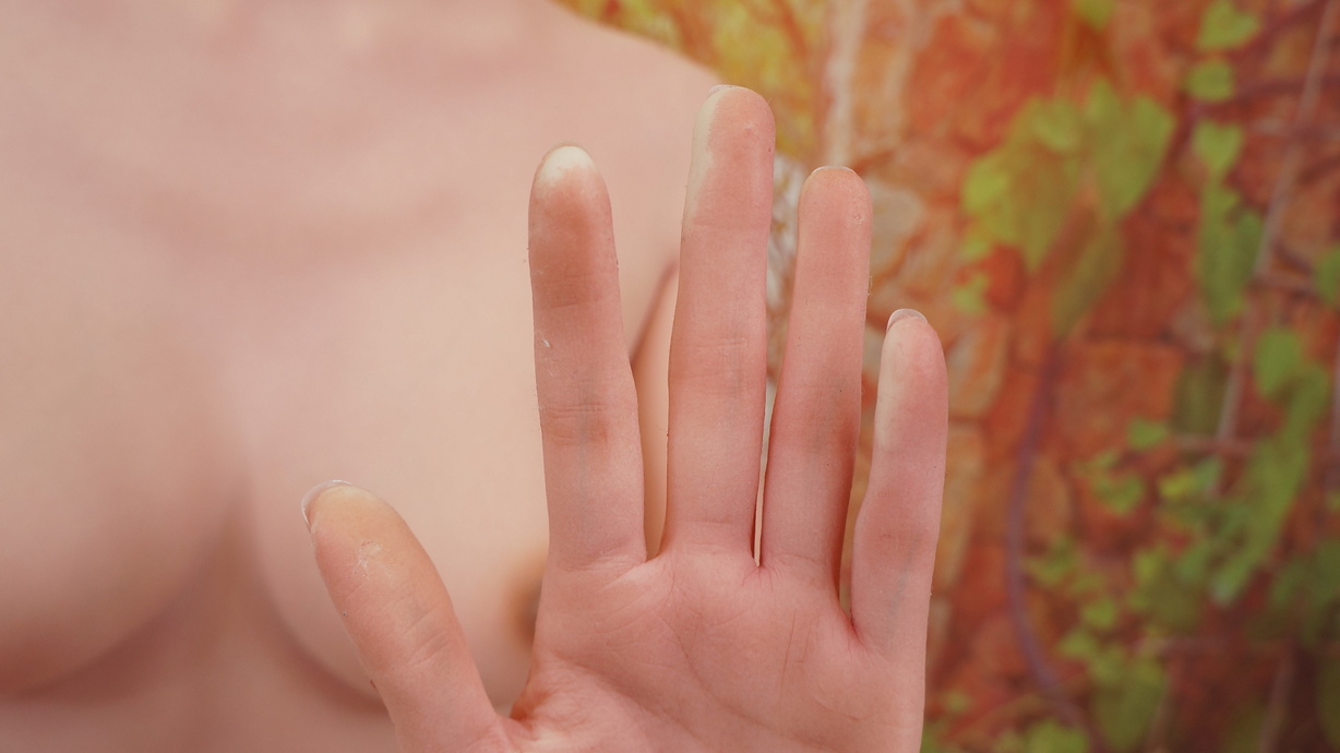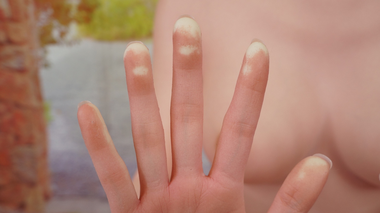 ・右手指にわずかな亀裂(補修済み)-