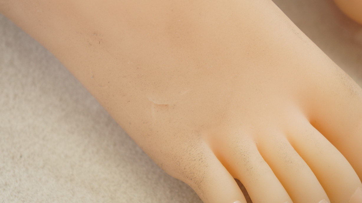 ・両足の甲にわずかな亀裂(補修済)-