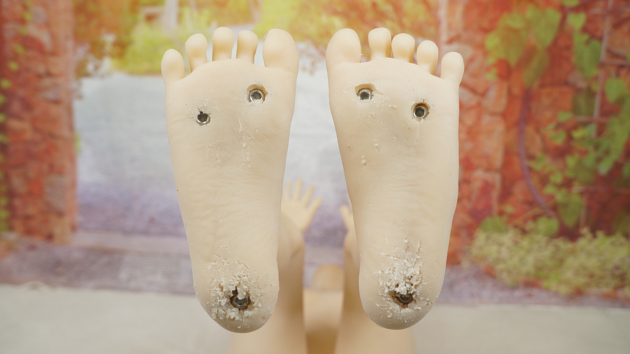 ・両足裏にほつれと亀裂-