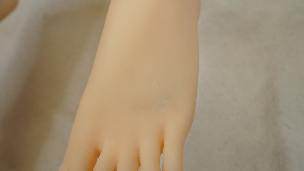 ・両足の甲にわずかな亀裂(補修済み)-