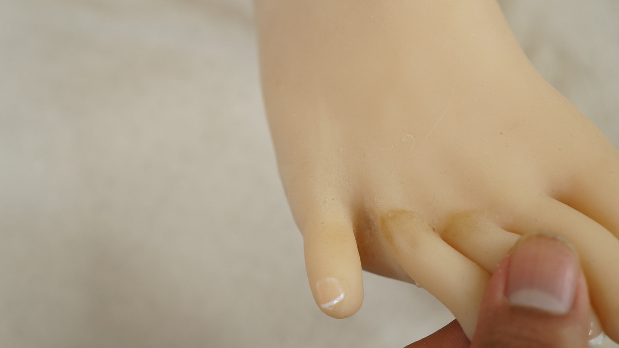 ・左足小指、薬指付け根にわずかな亀裂(補修済み)-