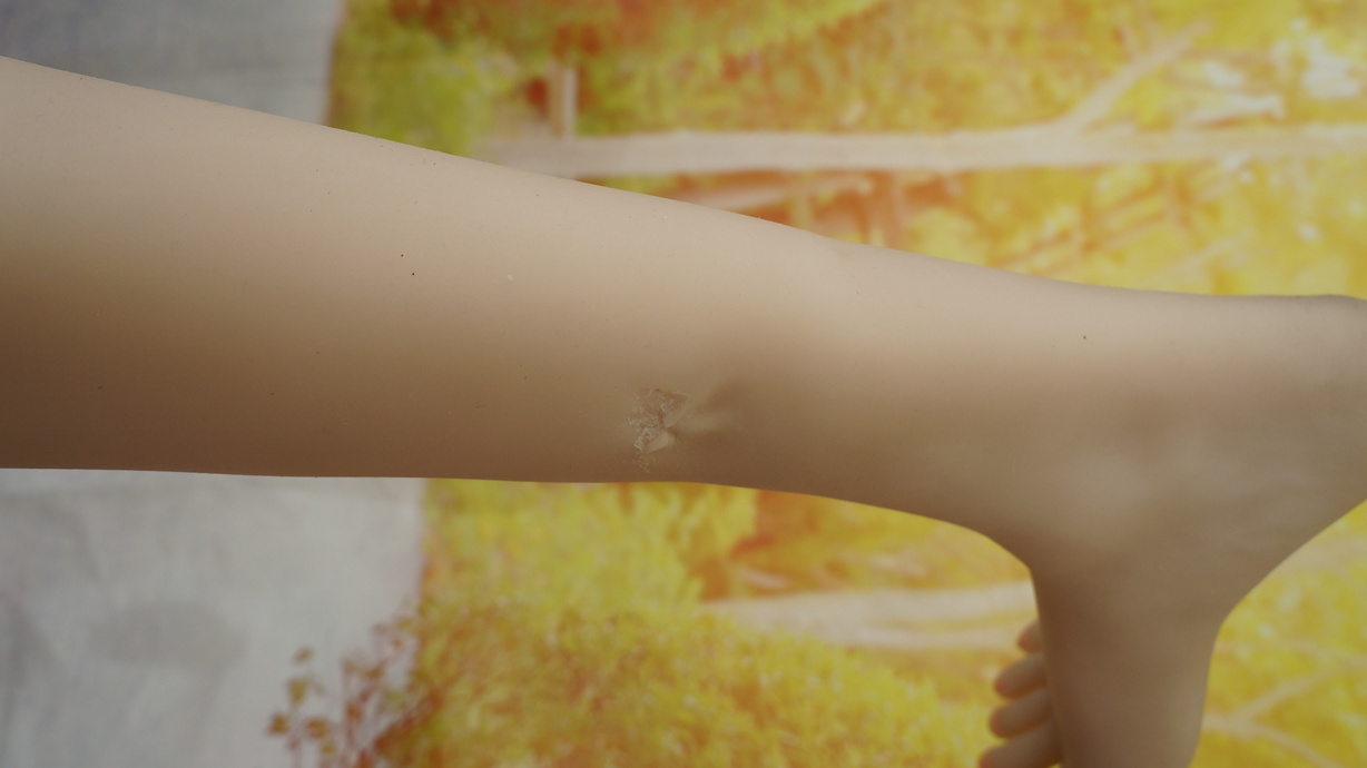・右太ももに亀裂(補修済み)と型付-