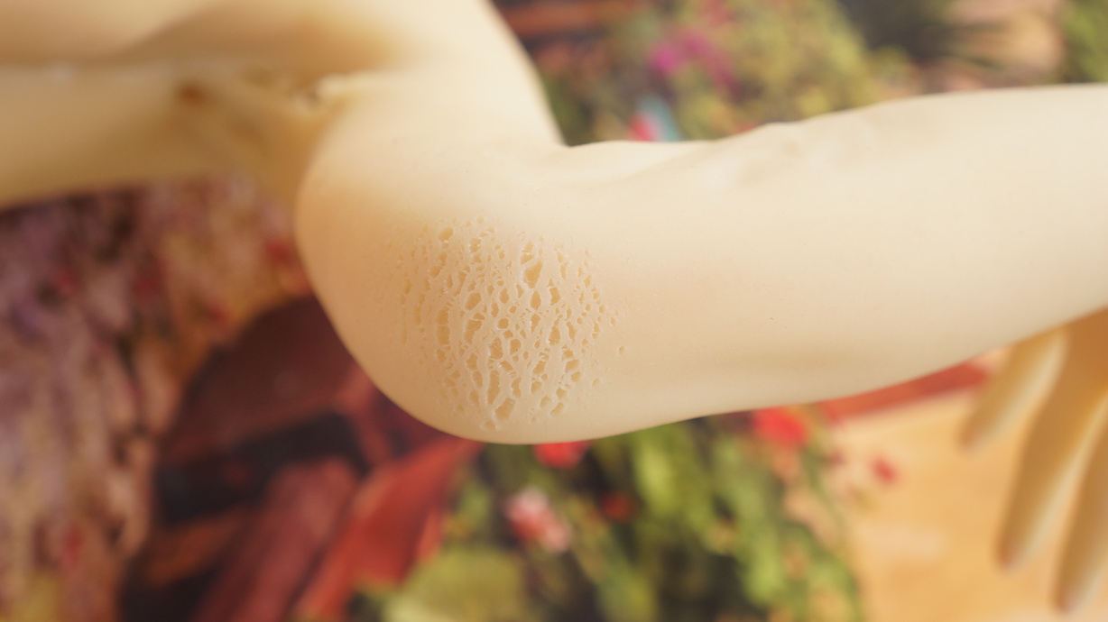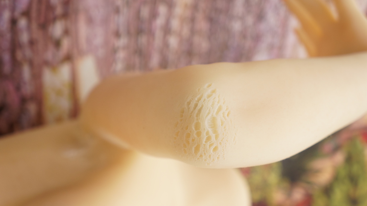 ・両肘に薄い亀裂-