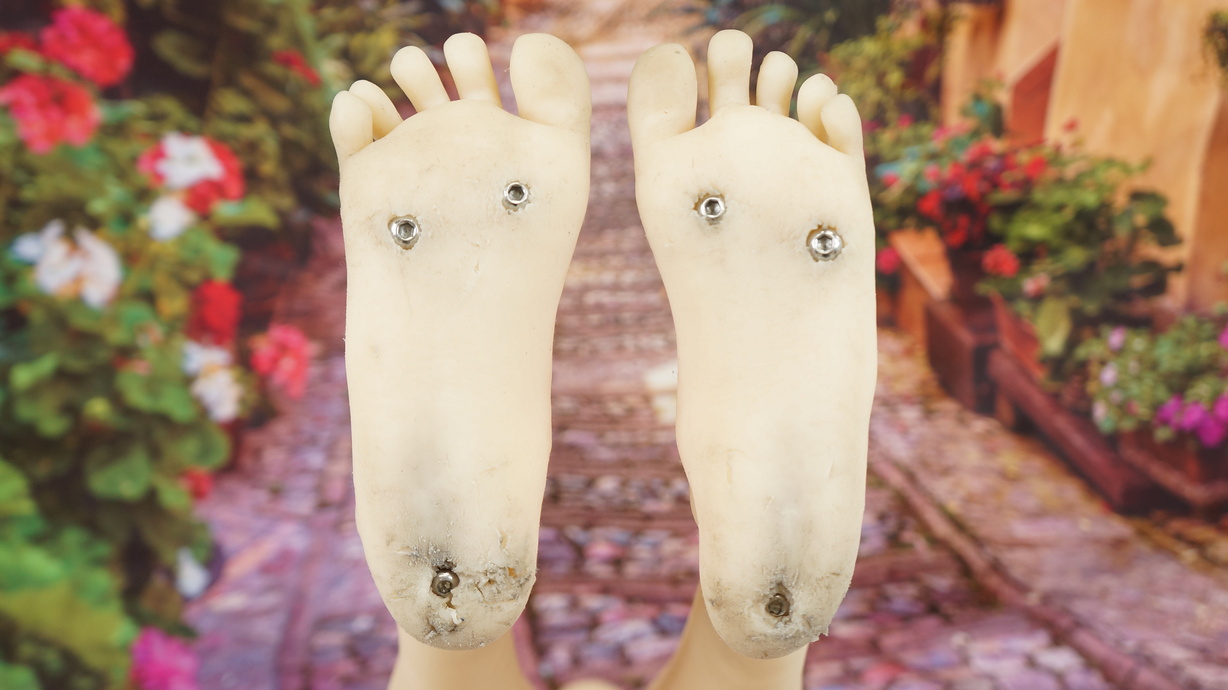 ・両足裏にほつれと黒ずみ-