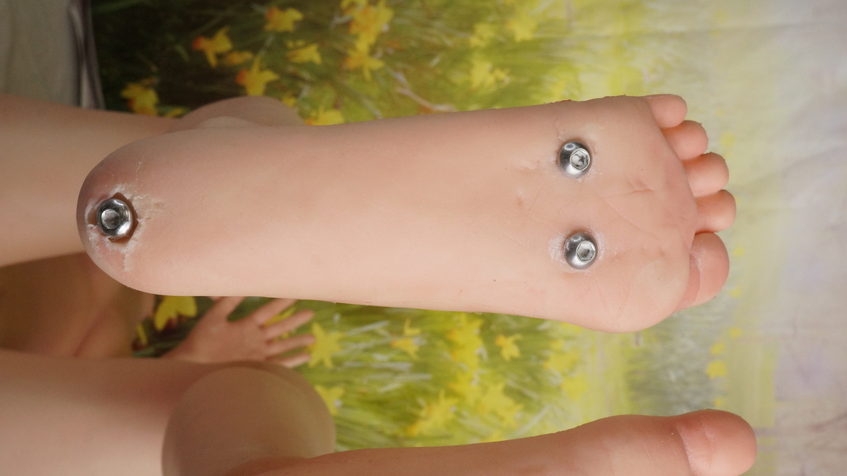 ・左手の平にわずかな亀裂(補修済み)-
