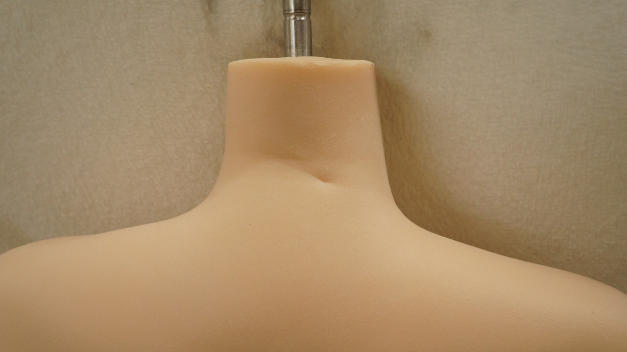 ・左胸にわずかな亀裂(内容物漏れなし)-