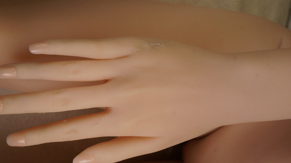 ・両手指にわずかな亀裂(補修済み)-