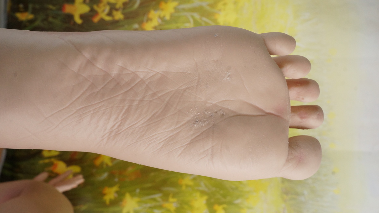 ・両足裏、ホール周辺にわずかなほつれ-