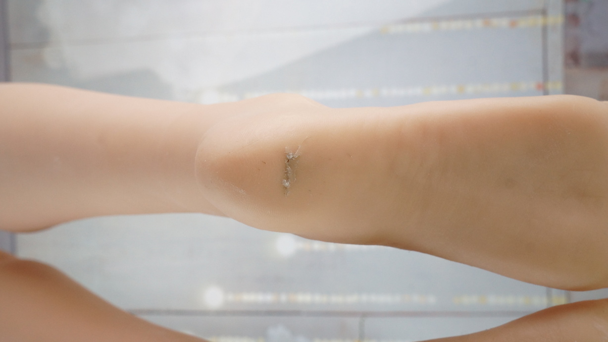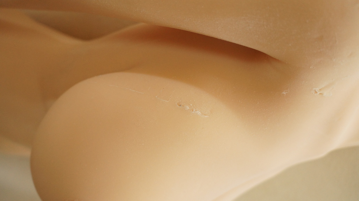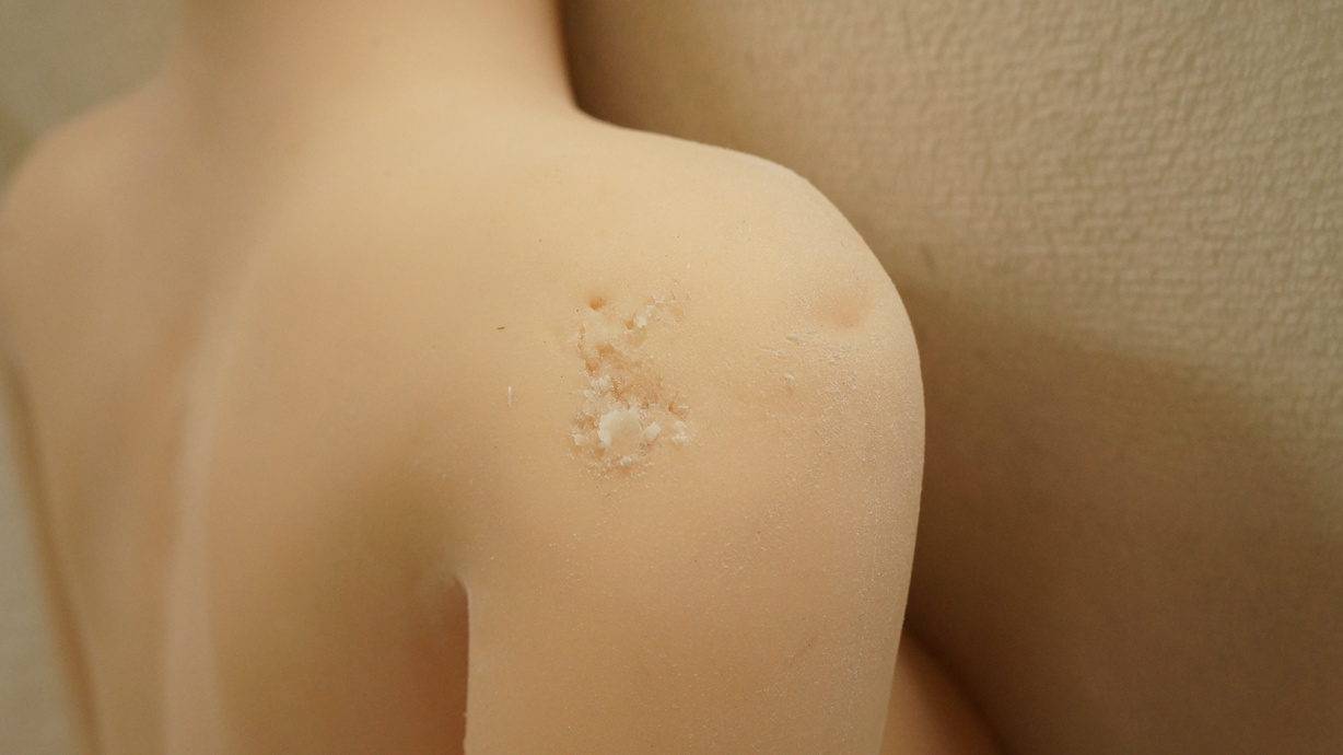 ・両胸に少しの亀裂(内容物漏れなし) -