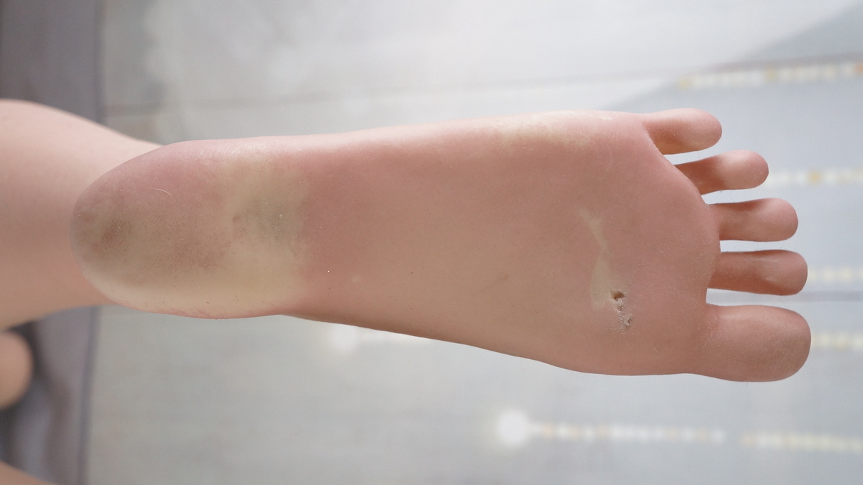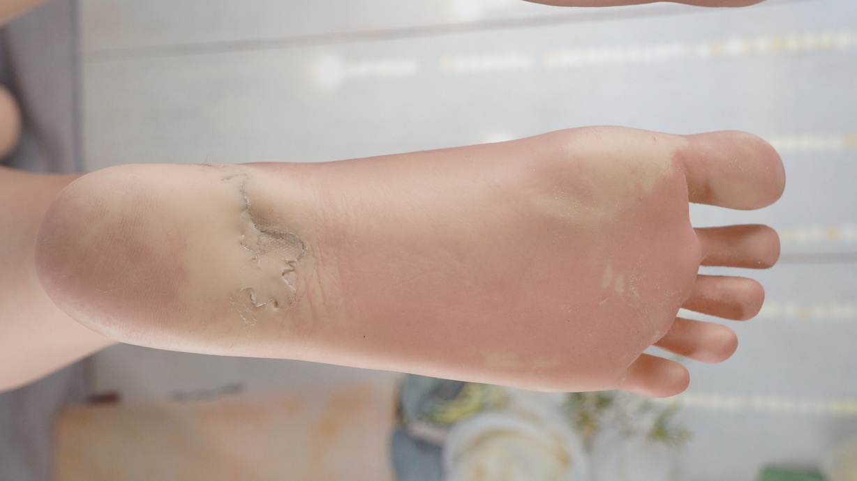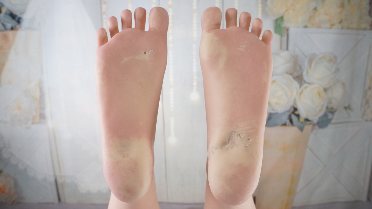 ・両足裏に亀裂と塗装薄れ(補修済)-