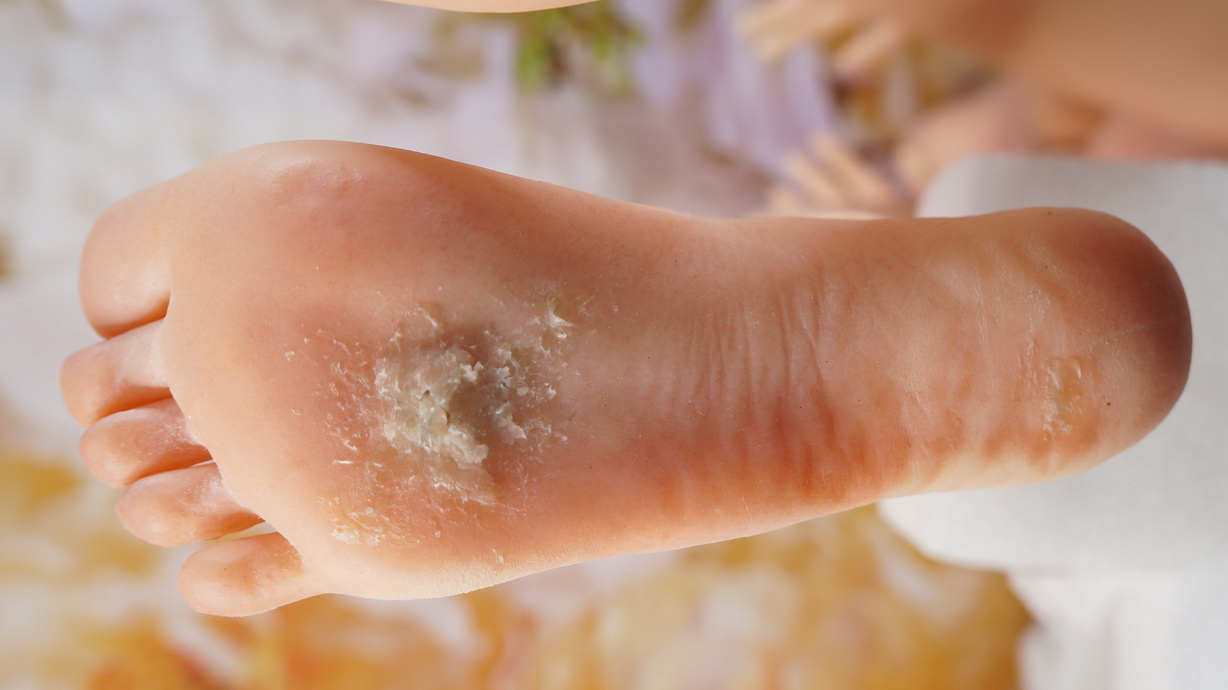 ・両足裏亀裂補修跡-