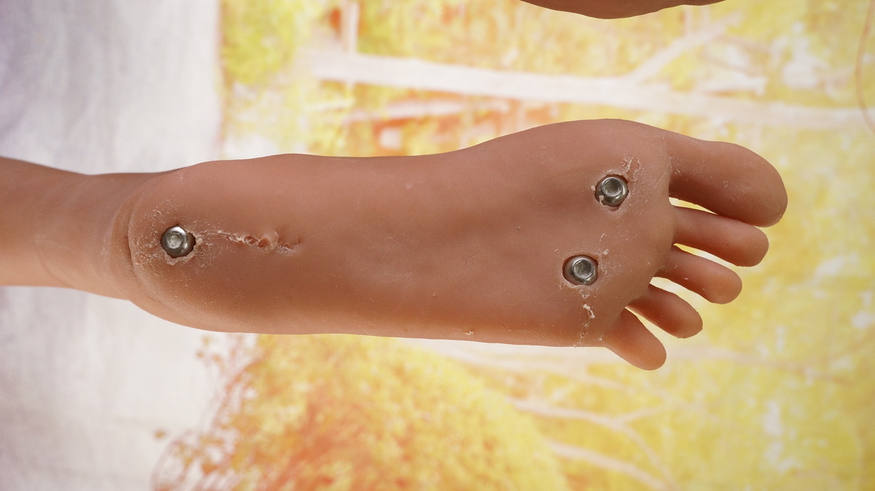 ・両足裏、ホール周辺にわずかなほつれ-