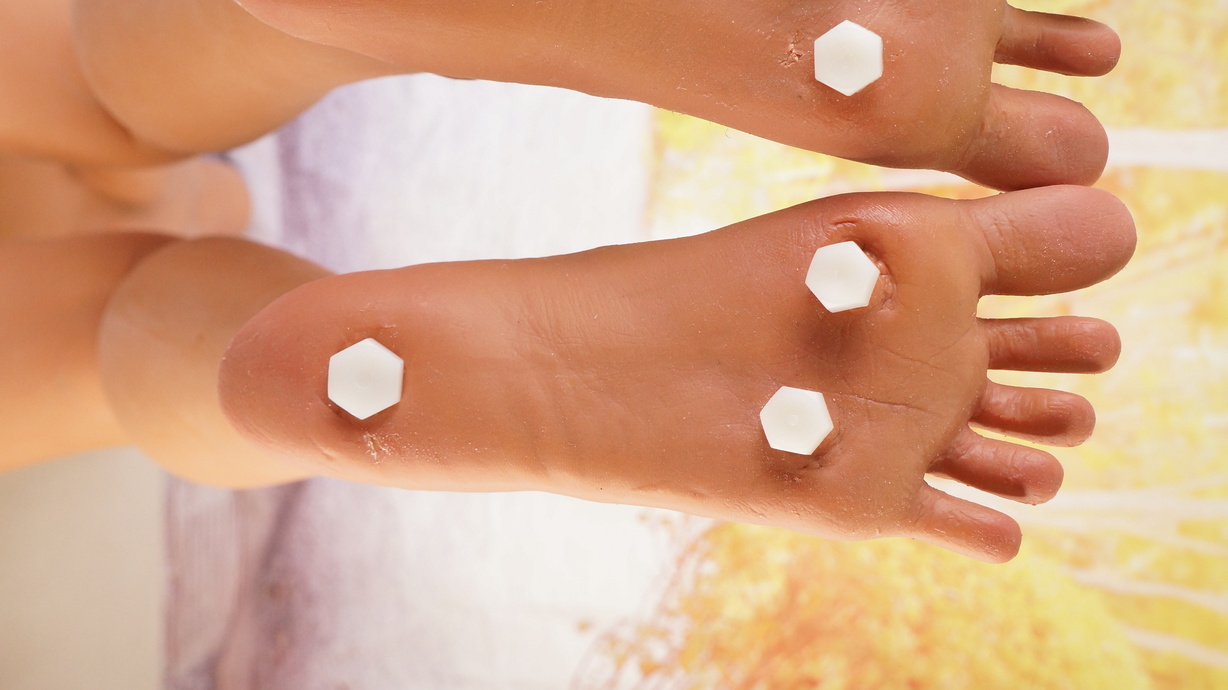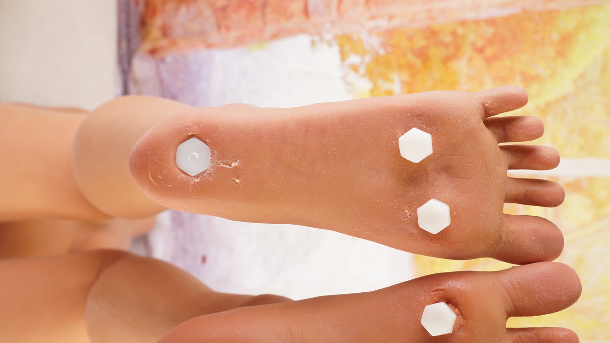 ・両足裏、ホール周辺にわずかなほつれ-