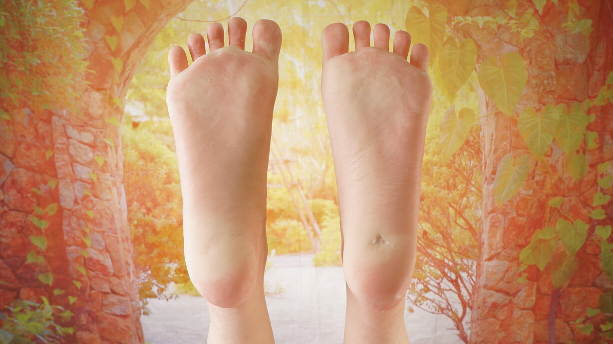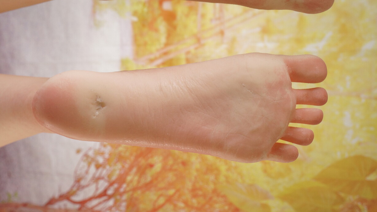 ・左足裏、ホール周辺に少しの亀裂(左足裏:補修済)-