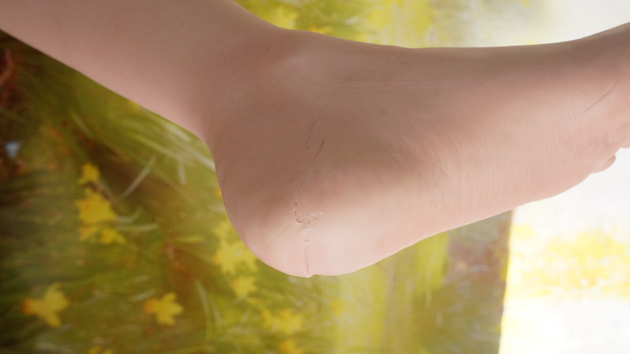 ・左足踵に亀裂(補修済み)-