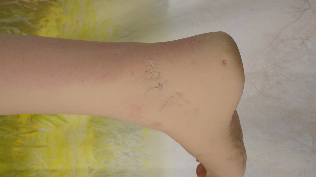 ・右肘、両足に亀裂(補修済み)-