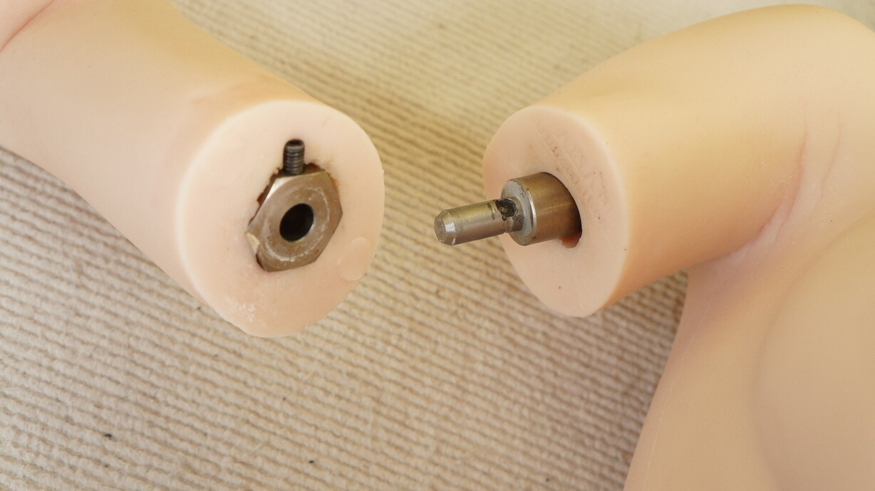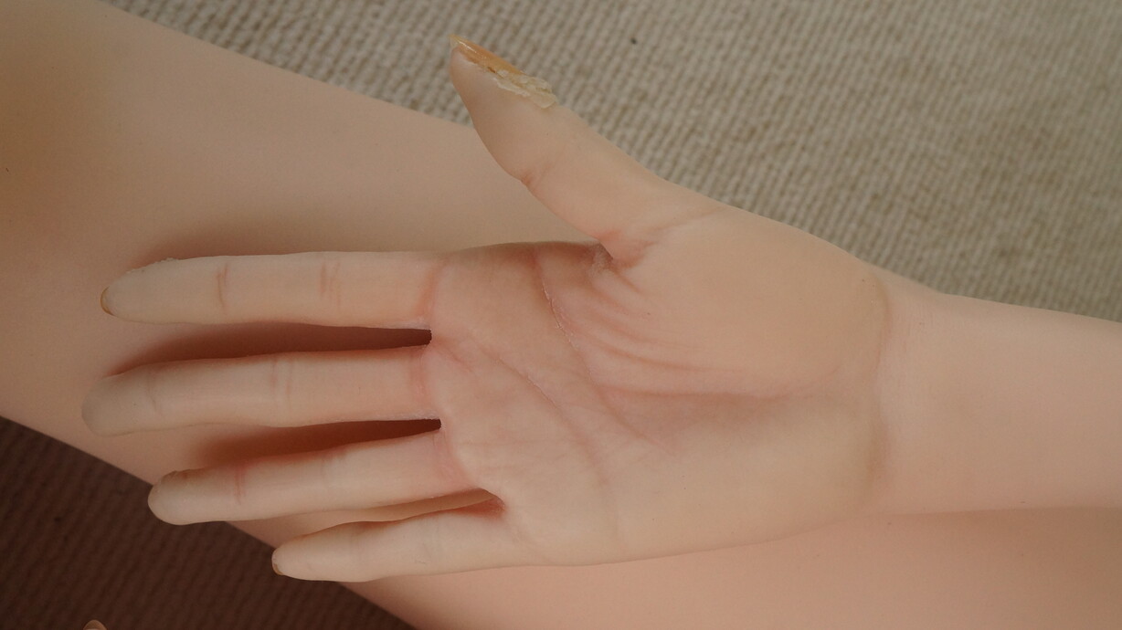 ・左手首に関節抜けと亀裂(補修済み)-