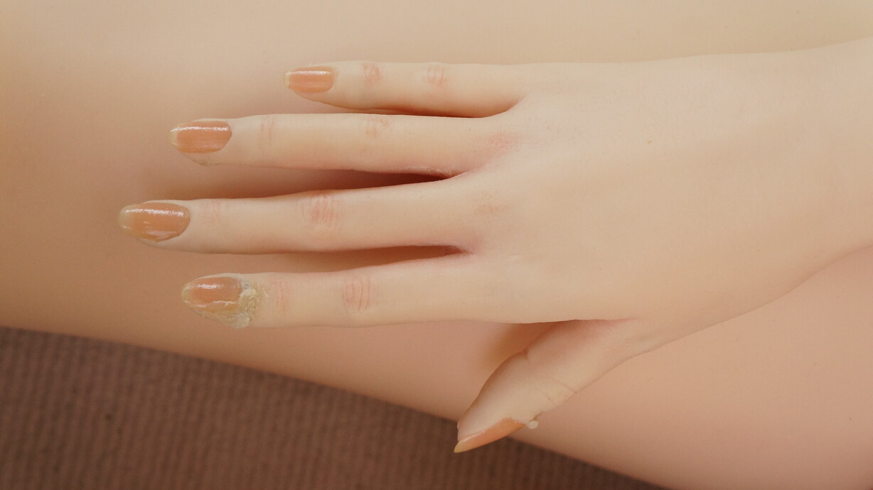 肌色は柔らかな印象のピンク。ほくろのない滑らかな肌質と下睫毛の植毛によって、ナチュラルで清潔感あるビジュアルを表現しています。陰毛植毛仕様で、リアリティの高い外観を実現。