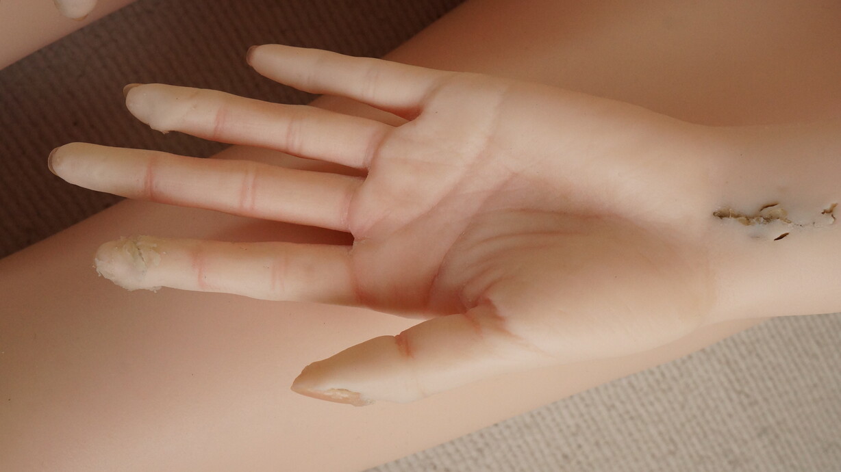 ・両手、両足に補修痕-