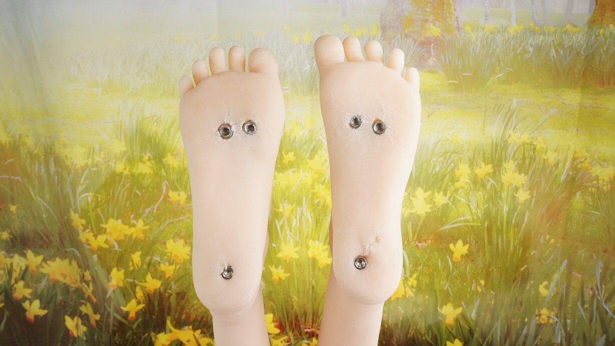 両足裏、ホール周辺にわずかなほつれ-