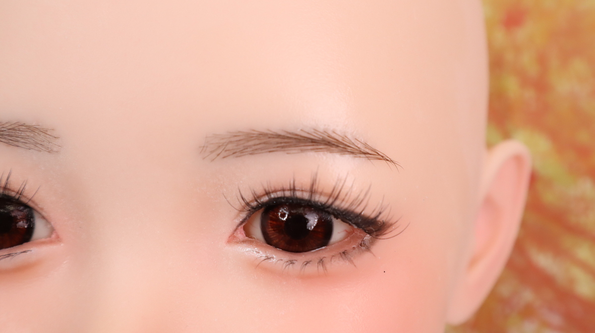 眉毛と下睫毛は繊細な植毛仕上げで、立体感のある仕上がり。視点移動機能により、撮影や観賞時に目線の表情変化をつけることができ、リアリティを高めています。