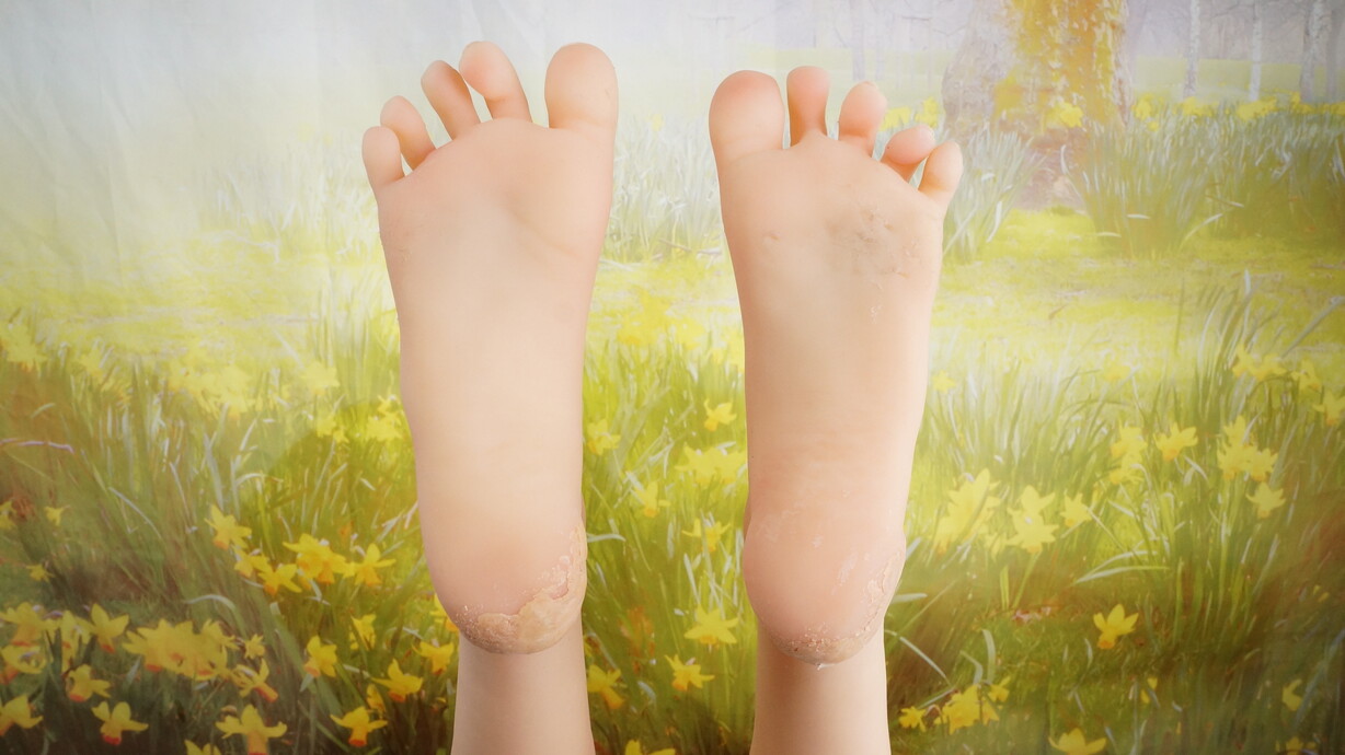 ・両足踵に補修痕-