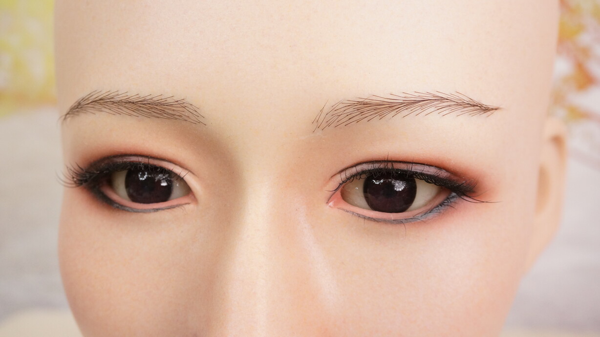 職人による手作業メイクが施され、肌の陰影・リップの艶・まつ毛の立体感まで丁寧に表現。自然光でも生きているようなリアリティを再現します。